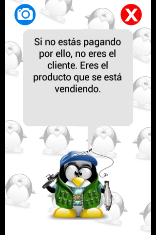 app para android de frases frikis, se trata de nuestro amigo Tux (el pingüino de Linux) que nos viene con una nueva frase cada 4 horas. Además de esto, también nos da la opción de compartir estas frases con nuestros amigos.
